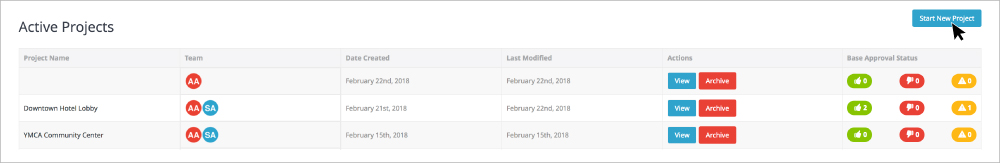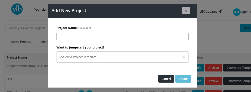 Agents can create new projects in a few different ways but the primary way to get started is from the Active Projects page. It only takes a few seconds to start a new project.